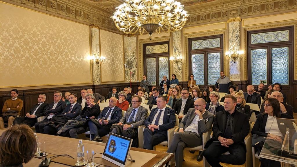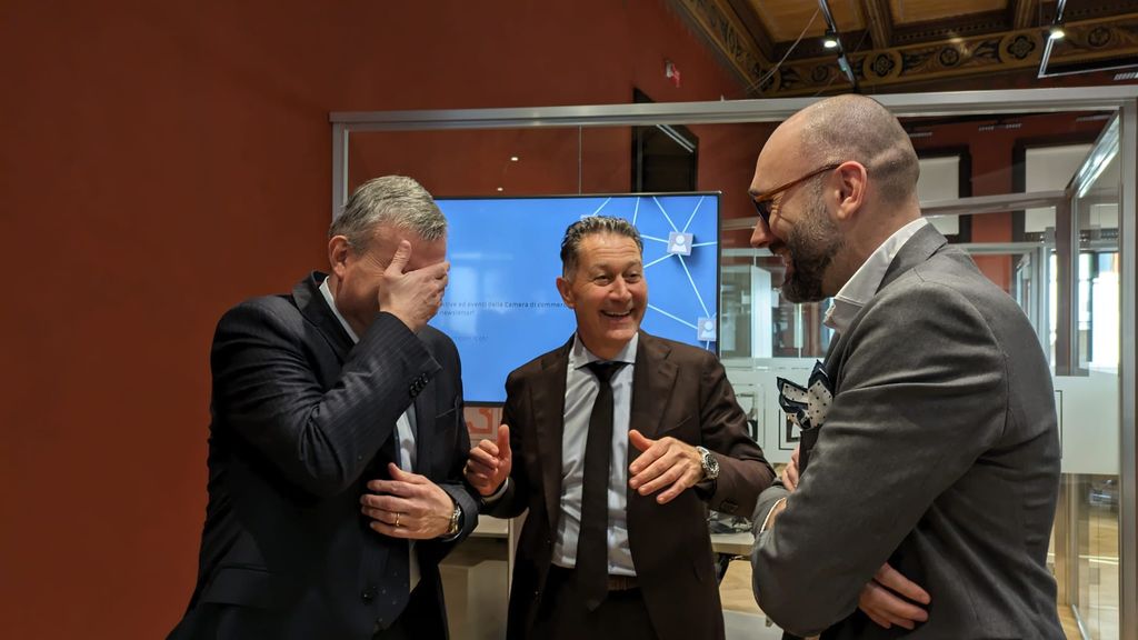 Prosegue così il restyling della sede iniziato con la Sala Polivalente di Palazzo Tetto Sottile e il Salone d'Onore. “Verso i mesi di maggio e giugno completeremo l'opera con la parte esterna per celebrare nel 2026 i cento anni della Camera di commercio”, chiude il presidente Gola.