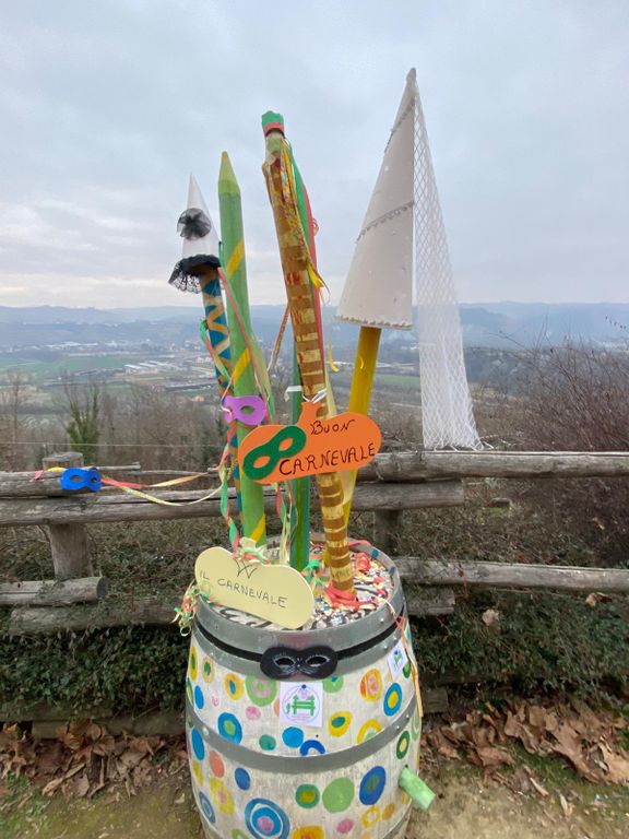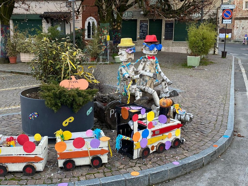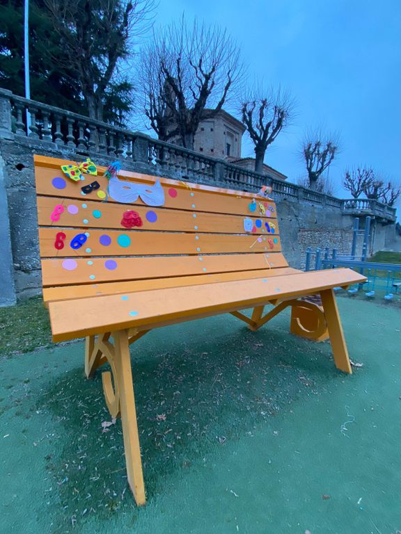 Intanto il paese e la "Big Bench" si sono vestiti a festa con diverse mascherine, stelle filanti e addobbi. Gli allestimenti sono stati curati dalla signora Anna con le amiche Daniela Maria Grisotto e Maria Rita Giuliano.