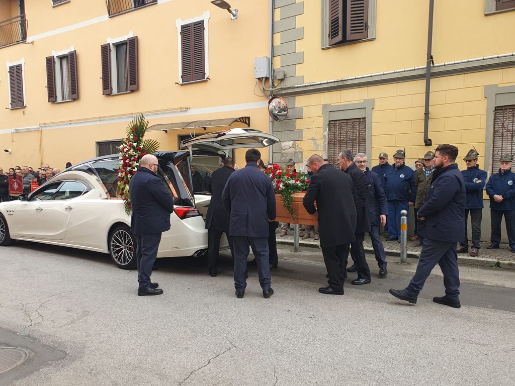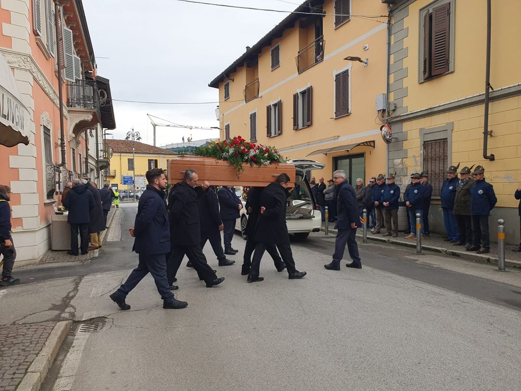 IIl corteo funebre era preceduto dagli alpini dei Gruppi Ana (Osella era una 'penna nera' molto affezionato all’Arma degli alpini tanto da avergli dedicato il noto formaggio 'L’Alpino' una sorta di piccolo ‘brie’) a seguire i gruppi di volontariato del paese e del Racconigesi che i coniugi Osella hanno sempre supportato.