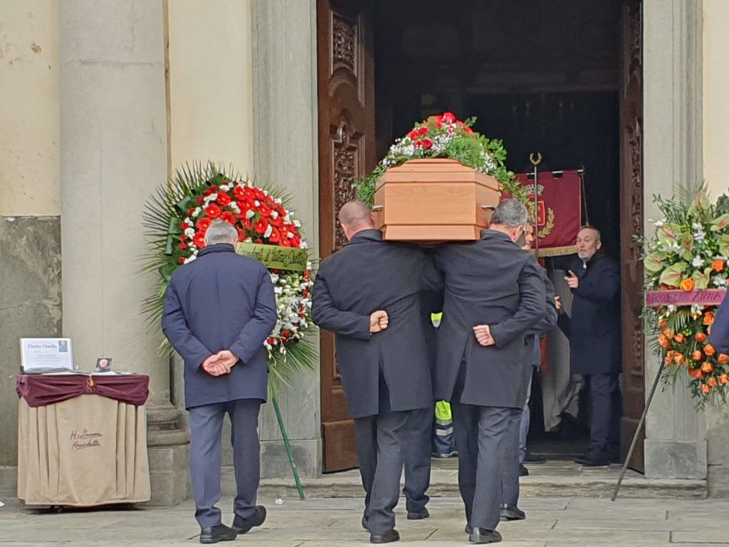Sul sagrato della chiesa, dedicata all’Assunzione di Maria Vergine, il parroco don Mario Sebastiano Mana ha accolto la salma con le preghiere di rito. L’ingresso è stato accompagnato dal coro parrocchiale che Dario, con la moglie Anna, amava ascoltare andando a messa la domenica.