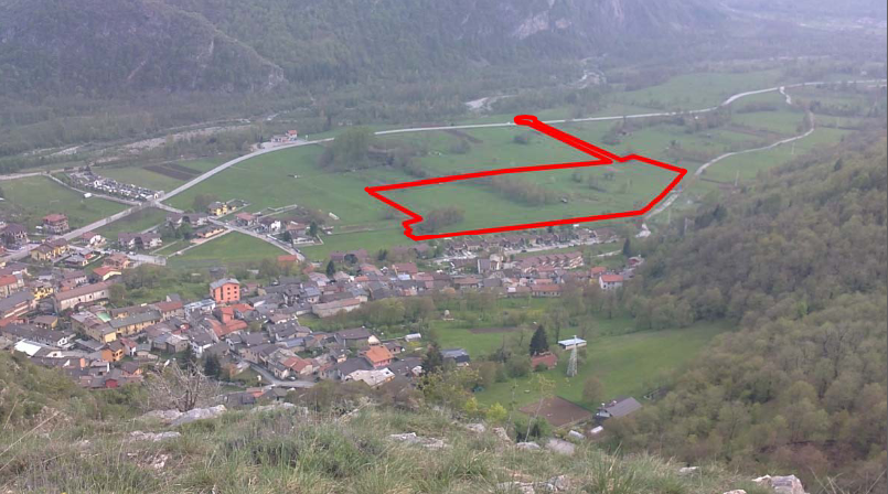 L’area d’intervento, a ridosso del centro abitato di Valdieri a quota 775 metri di altitudine, è individuata su una superficie complessiva pari a 55.776 metri quadri. Si tratta di una zona pianeggiante attualmente destinata ad uso agricolo e libera da edificazioni, compresa tra la strada di Santa Croce e la provinciale 22.