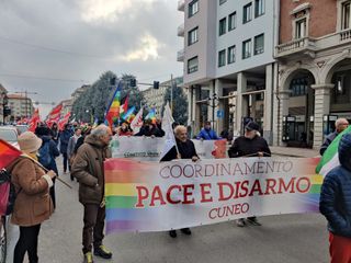 Tra gli interventi quello di Fulvio Barberis, coordinatore di Pace e disarmo di Cuneo: "Siamo presenti in 120 piazze d'Italia e d'Europa. Il popolo di costruttori di pace per fermare la corsa al riarmo e la devastazione del pianeta".