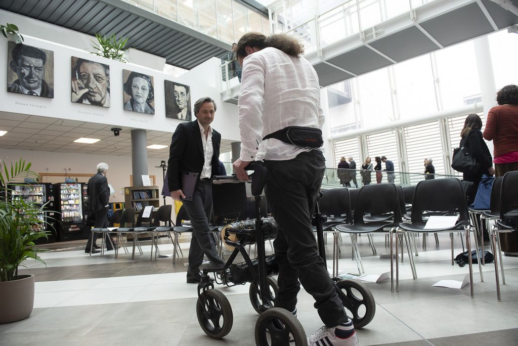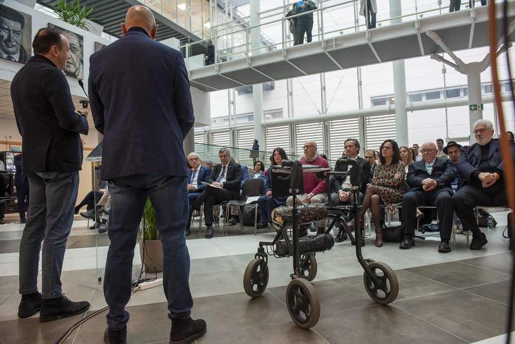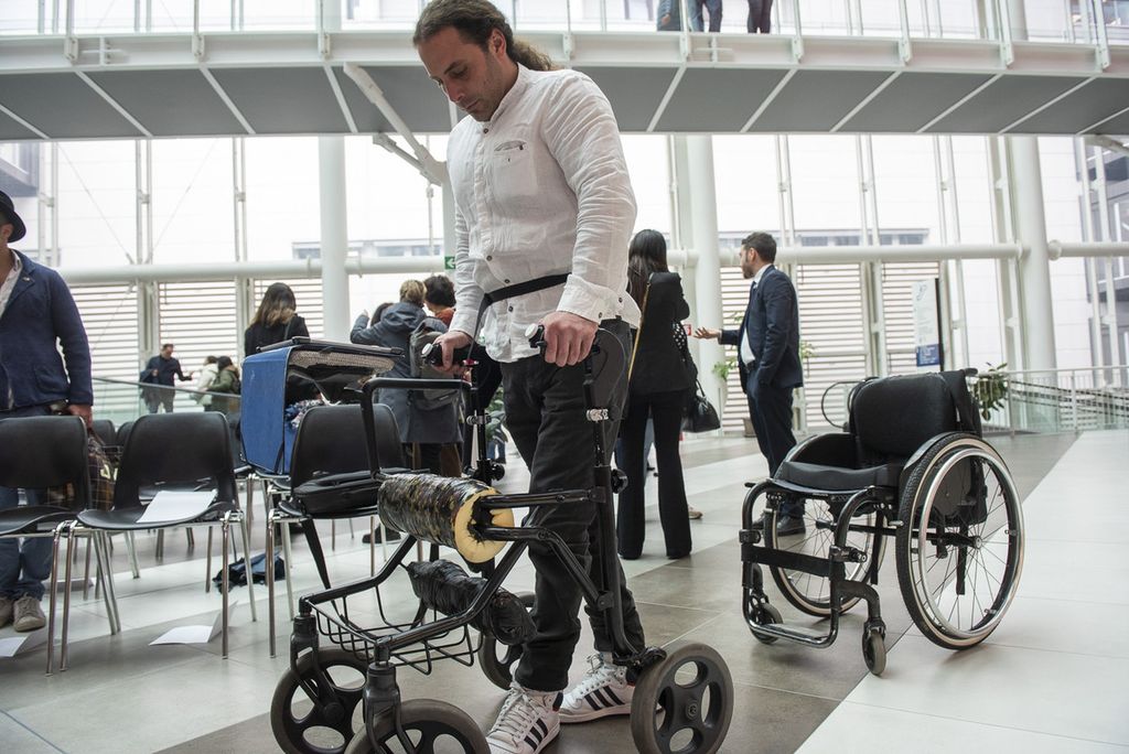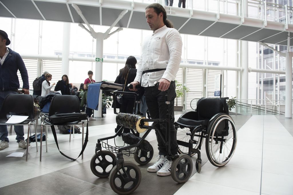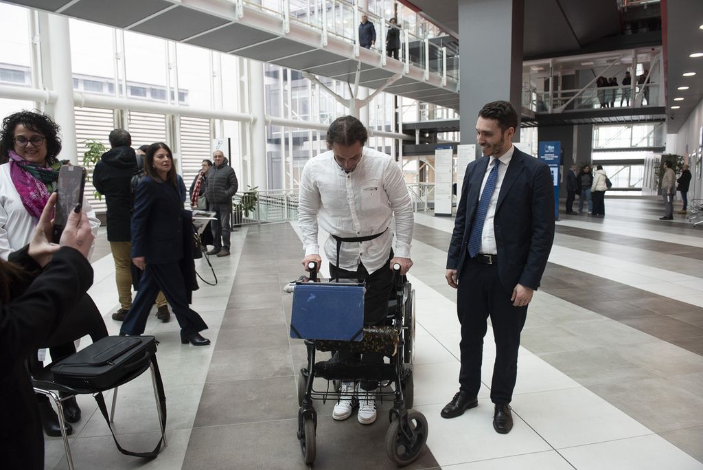 Durante l’incontro che si è svolto all’Ospedale di Verduno, Michel Roccati, trentenne rimasto paralizzato per un incidente in moto, ha dato una dimostrazione pratica di come sia tornato a camminare grazie agli elettrodi impiantati nel suo midollo spinale.