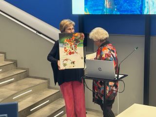 Prima della consegna delle opere, si è tenuta una panoramica sul ruolo della ricerca e sulla situazione degli studi attivi presso l'ASL Cn2, presentata da Giuliana Chiesa, responsabile SS Progetti, Ricerca e Innovazione.