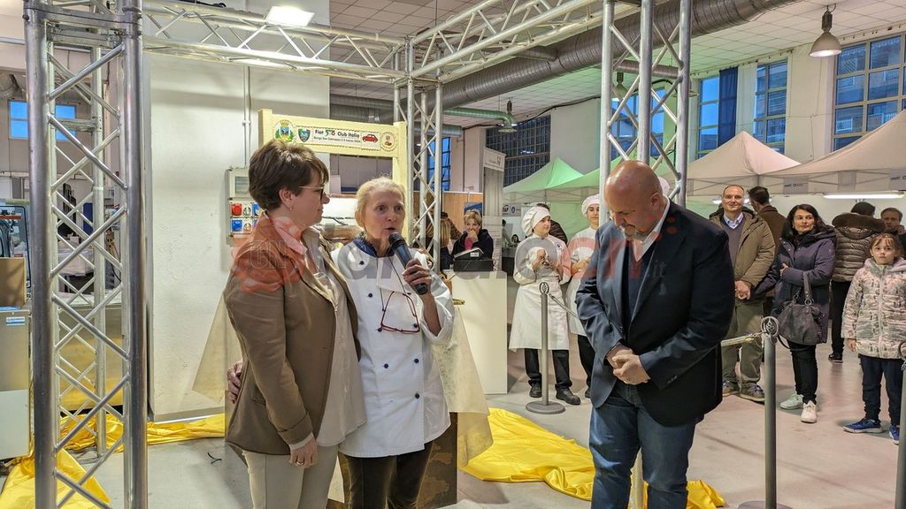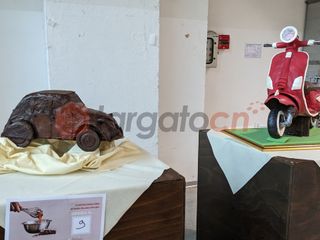 Dopo il taglio del nastro è stata svelata la mega-scultura a tema motori realizzati dall'associazione Amici del Cioccolato.