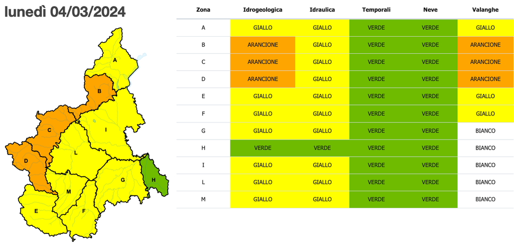 Ciò ha comportato una prima attenuazione della ventilazione orientale e una conseguente attenuazione delle precipitazioni che ancora hanno insistito sulla fascia pedemontana alpina, appenninica e sul Piemonte settentrionale con valori generalmente moderati o localmente forti, mentre sul resto della regione sono stati deboli. La quota neve si è attestata sui 700-900m, localmente a quote collinari in val Pellice e val Sesia; nelle ultime 12 ore si sono registrati accumuli nevosi di 40-50 cm su Alpi Graie e Alpi Cozie Nord.