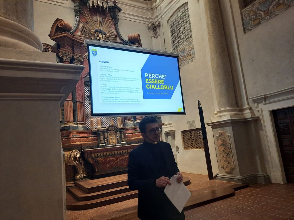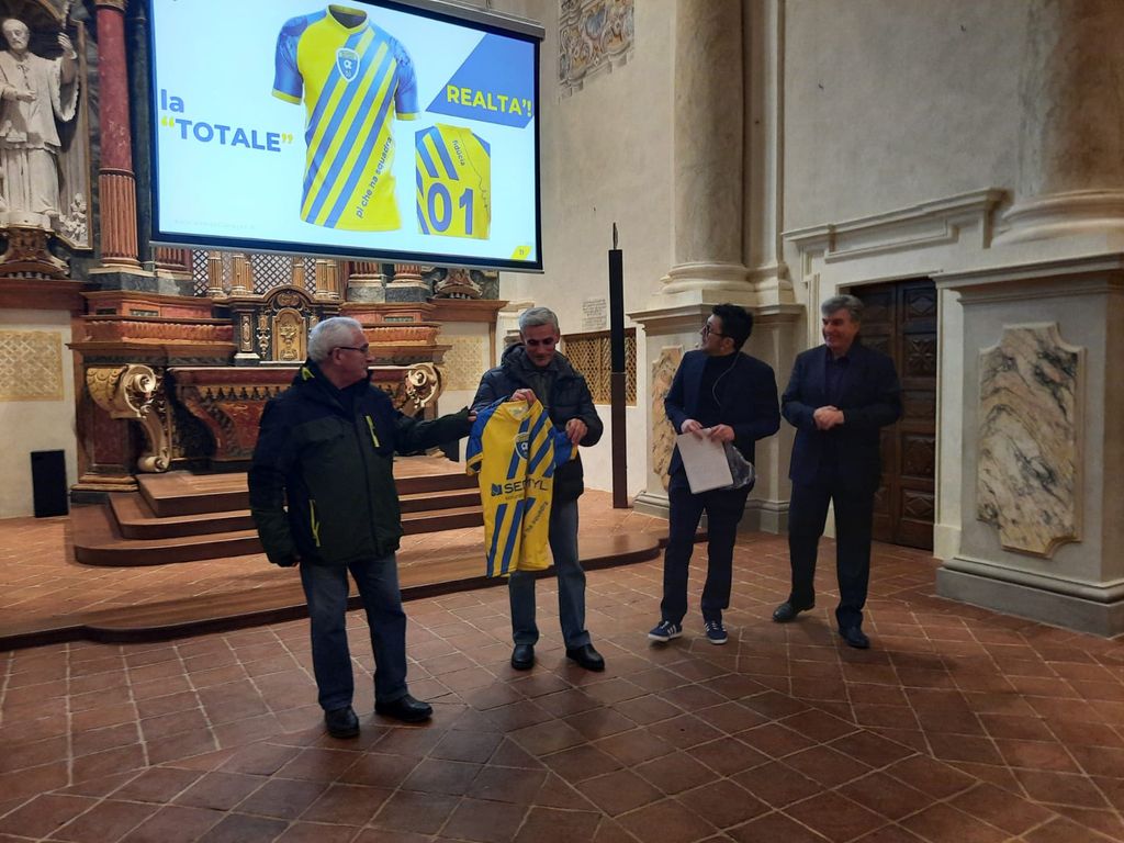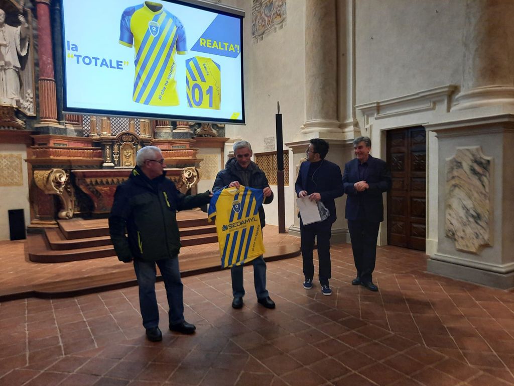 Ma adesso finalmente c’è. La nuova prima maglia ufficiale (realizzata da Francesco Lorenzetti) è stata presentata durante il Gala Giallo Blu, al Monastero della Stella, alcuni giorni fa. È identificata dal nome: “Totale“, perché in essa è racchiusa tutta la storia dell’associazione e la sua filosofia di gioco.