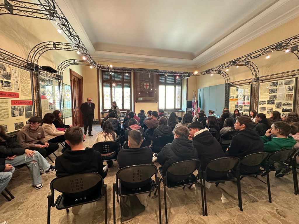“E’ stato un piacere accogliere in Comune gli studenti di Alba e di Vicchio uniti dalla comune passione per la musica che, ci auguriamo, accompagni tutto il loro percorso di vita – dichiara l’assessore all’Istruzione Elisa Boschiazzo -. Ringraziamo l’ex segretario generale Francesco D’Agostino che si è prestato a farci da cicerone per raccontarci la sala Consiglio “T. Bubbio” e le opere che custodisce al suo interno, i dipinti sullo scalone monumentale e la sala della Resistenza”.
