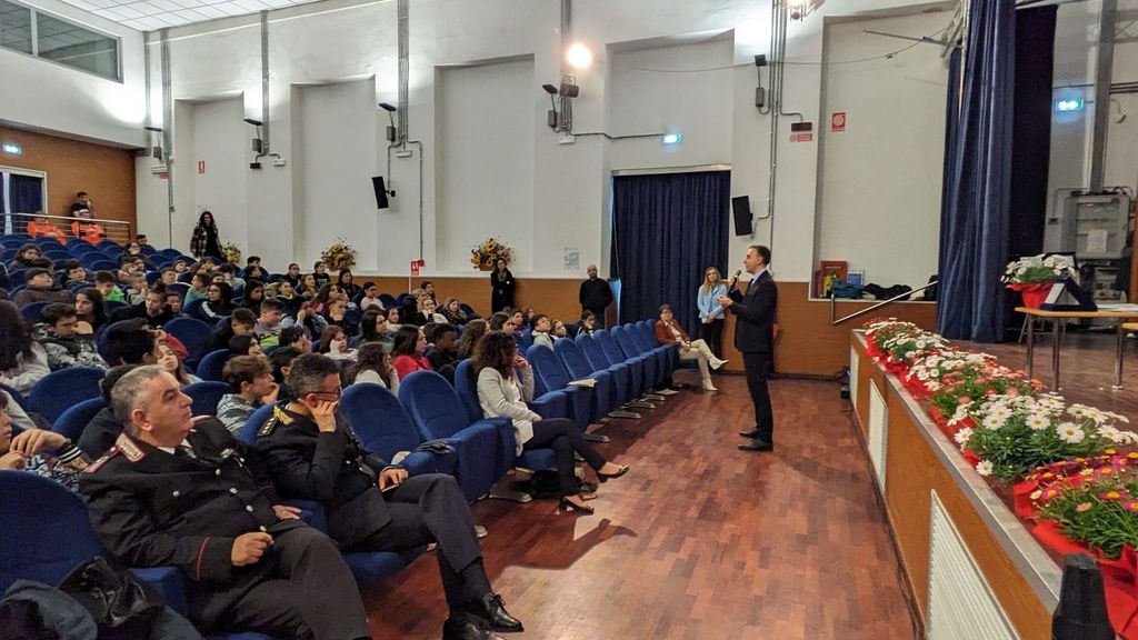 Manganaro ha quindi ricordato di aver scelto da che parte stare alle medie: “Vi racconto di Giuseppe, Carlo e Delfio, tre miei compagni siciliani. Giuseppe prendeva il panino al compagno con il tipico atteggiamento da figlio del boss; Carlo tirava la spugna in faccia a Salvo, il più studioso della classe; e Delfio ci picchiava se non gli facevamo copiare i compiti. Insomma quelli che oggi definiremmo bulli. Ebbene, Carlo venne ucciso in un regolamento di conti in famiglia nel 2000. Gli altri due oggi stanno al 41bis, condannati per mafia a 27 anni. In quegli anni ho fatto una scelta, non sono mai stato in silenzio, ho denunciato i soprusi e donavo il mio panino a chi se l'era visto sottrarre. Non ho mai condiviso la mentalità mafiosa. Se pensate che la mafia sia solo in Sicilia vi sbagliate, se credete che c'è un compagno che si comporta male, dovete segnalarlo. La mafia teme più la scuola che le istituzioni perché alla scuole si insegna la legalità. Io ho scelto da che parte stare alle medie. Voi siete la nostra forza per combattere contro la mafia. Negli anni del liceo hanno ammazzato Falcone e Borsellino e lì scelsi di studiare Giurisprudenza per diventare ispettore di polizia e dare il mo contributo alla lotta alla mafia”.