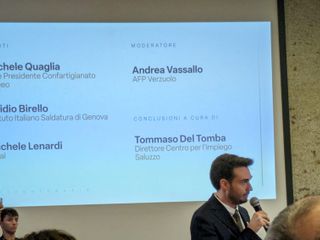 Egidio Birello per l'Istituto Italiano Saldatura di Genova ha parlato di Intelligenza Artificiale: "Un mondo tutto da scoprire. La saldatura è un procedimento speciale che si divide in tre fasi, quella del prima, durante e dopo. L'intelligenza artificiale ci deve aiutare a ridurre i tempi in modo che sia una persona sola a scegliere, eseguire e controllare".