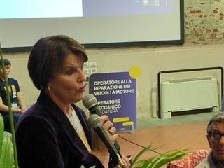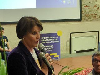 I saluti e i ringraziamenti li ha portati Ingrid Brizio, direttore gLenerale AFP: "Grazie ai presenti, ai colleghi CFP di Verzuolo che esprimono stile di qualità. il tema del lavoro mi appassiona tantissimo. Ricordo che qualche anno fa abbiamo rischiato un incidente sul lavoro a Genola. Ebbene, da quel giorno, abbiamo preteso che tutti i nostri docenti fossero qualificati in sicurezza e i ragazzi non vanno in stage se non raggiungono almeno una votazione di 80/100 in materia sicurezza. Noi ci impegnamo a seminare la cultura della sicurezza".