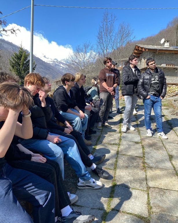 Lunedì 18 e martedì 19 il gruppo ha svolto dei laboratori ad Ostana, esempio virtuoso di rigenerazione di un luogo secondo criteri di etica e sostenibilità. Qui, accolti dalla sindaca Silvia Rovere e dallo staff della struttura ricettiva “Galaberna”, i ragazzi hanno potuto confrontarsi con l’esperienza di Enrico, responsabile della cooperativa “La valle dell’Eco”, che ha mostrato loro le principali tecniche edilizie per costruire e ristrutturare edifici con materiali tipici della zona, nel rispetto del territorio e dell’ambiente, e ascoltare la testimonianza di Serena, laureata in Scienze Erboristiche e titolare dell’impresa “L’orto di Serena”, che ha raccontato loro la sua esperienza di coltivazione in alta quota e mostrato il suo laboratorio per la confezione di confetture. Gli studenti hanno poi conosciuto alcuni operatori di “Viso a Viso”, cooperativa di comunità che sperimenta un modello di rigenerazione anche culturale, con grande attenzione ai giovani e alla valorizzazione della Biodiversità. Maria e Ginevra, accompagnati da Francesco, hanno guidato i gruppi nel “Bosco incantato”, percorso naturalistico inaugurato dal signor Bossa nel 2014.