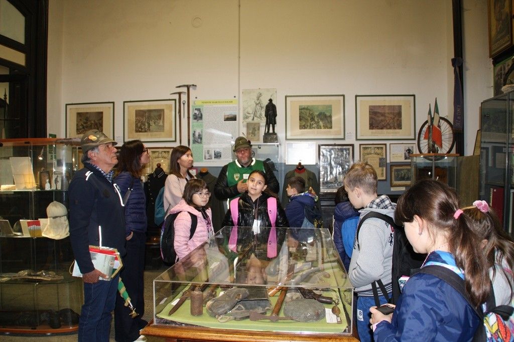 Gli Alpini presenti che ci hanno accolti, dopo l’emozionante alzabandiera accompagnata dall’inno nazionale cantato dai nostri bambini, ci hanno divisi in gruppetti per poter meglio spiegare il percorso museale.