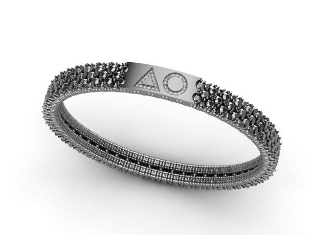 Abbiamo creato un bracciale estensibile in oro bianco e diamanti neri per Cristian Barra, il cantante dei Madyon, con il logo del gruppo del quale ho fatto parte.