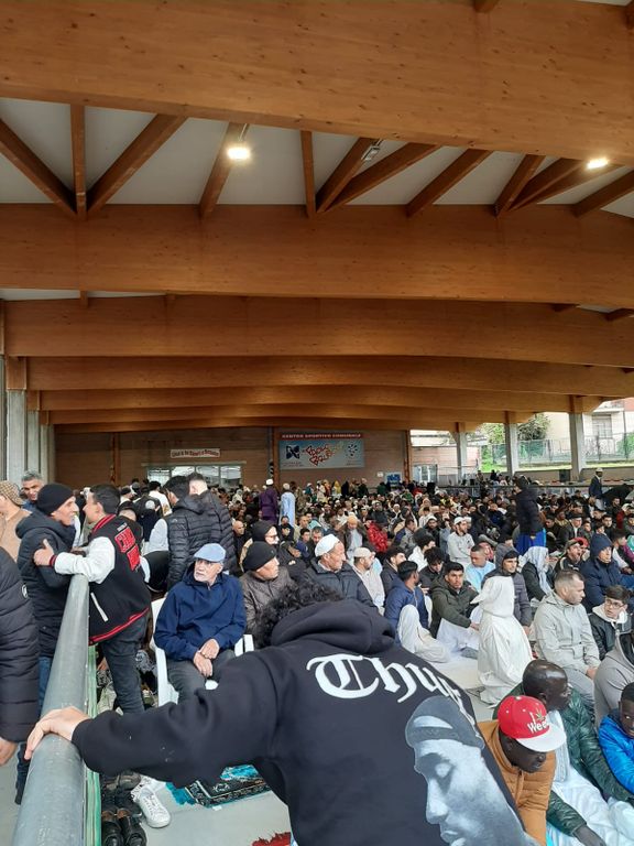 Un momento di gioia, di unione e di condivisione tra centinaia di persone: è quello vissuto oggi da Alba per la fine del Ramadan nel centro sportivo di via Santa Margherita. Tra i presenti che hanno portato i loro saluti alla comunità islamica il sindaco di Alba Carlo Bo, il consigliere e candidato a primo a cittadino Alberto Gatto e il consigliere Daniele Sobrero.