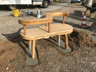 Da domani, nel suo paese, ci sarà una panchina dove si potrà pensare di essere seduti vicino a lei, come si legge nell'incisione, su un lato: "Ven turna a stetesi dausin da me".