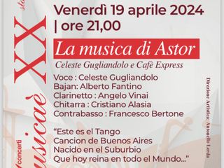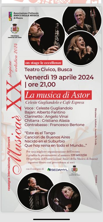 L’associazione Amici della Musica presenta per venerdì 19 aprile alle ore 21 al Teatro Civico “La Musica di Astor” con Celeste Gugliandolo e Cafè Express.
