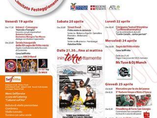 L’altra grande novità sarà presentata a tavola proprio nella sera inaugurale: il grande gemellaggio nel segno del gusto con le altre Confraternite dedite alla valorizzazione delle eccellenze del territorio. Ospiti della kermesse torresangiorgese saranno infatti venerdì 19 aprile la Confraternita della Nocciola di Cortemilia, domenica 21 quella del Gran Bollito di Carmagnola, giovedì 25 gran chiusura con gli Amici della Bagna Caöda. Tutti i menu degli appuntamenti gastronomici proporranno nelle tre giornate sfiziosi abbinamenti tra il fritto misto piemontese (proposto in tre piatti: salato, pesce e dolce) e i tre grandi classici della tradizione piemontese, quest’anno gemellati per omaggiare il ventennale.