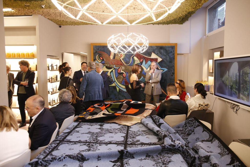 L’evento all’interno della Boutique a due passi da via Manzoni ha permesso agli ospiti di scoprire la storia degli arazzi esposti e degli artisti ad essi collegati, di approfondire curiosità sui telai ad alto liccio del Seicento, come quelli in uso da Scassa, e attuali visioni interpretative, in un vivace dialogo tra artisti, architetti e designer che ha generato fecondi scambi di idee e di ispirazioni, oltre ad annunciare una stretta collaborazione tra l’Arazzeria astigiana, sita nell’antico convento di Valmanera, e l’elegante Boutique milanese.