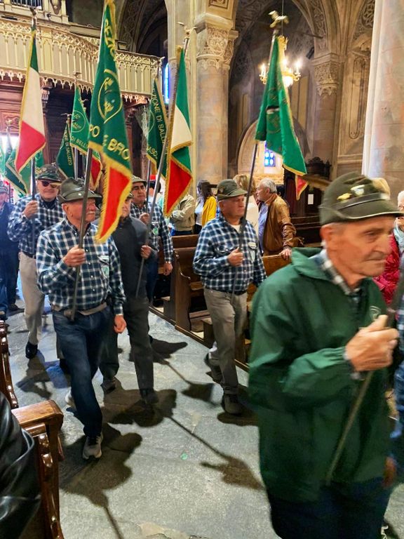 C’era anche il vessillo della sezione Ana del Brasile assieme a una cinquantina di gagliardetti provenienti da molte città e paesi del Piemonte, assieme a quello di Savona dalla Liguria a festeggiare i 100 anni di fondazione del gruppo degli Alpini di Revello.