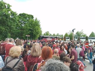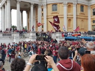 All'arrivo della squadra a Superga è partito qualche coro 'Cairo vattene', ma la maggior parte dei presenti con gli applausi (il record per Zapata) spegne le contestazioni. Qualche fischio e coro rivolto al presidente della società granata anche a fine della cerimonia all'arrivo alla lapide, momento conclusivo della celebrazione.