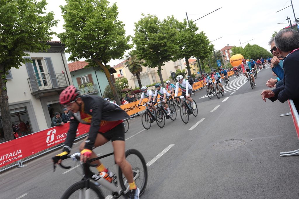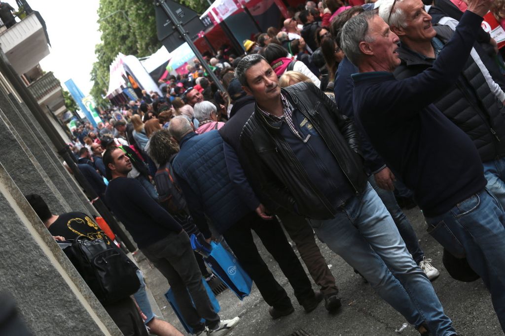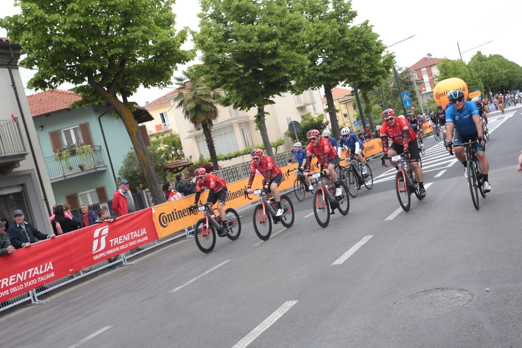Aspettando l'arrivo dei protagonisti del Giro Fossano ha rivolto i suoi applausi ai corridori del GiroE, al termine della frazione partita da Cherasco.