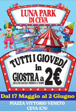 Da venerdì 17 maggio a domenica 2 giugno, Piazza Vittorio Veneto a Ceva si trasformerà in un regno di divertimento con l'arrivo del Luna Park!