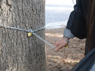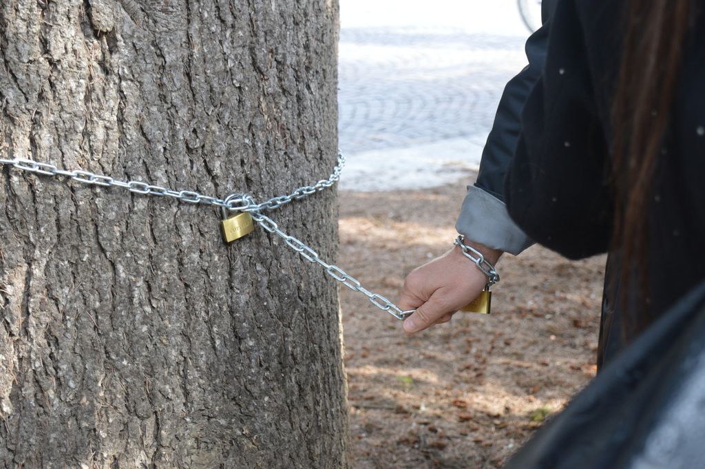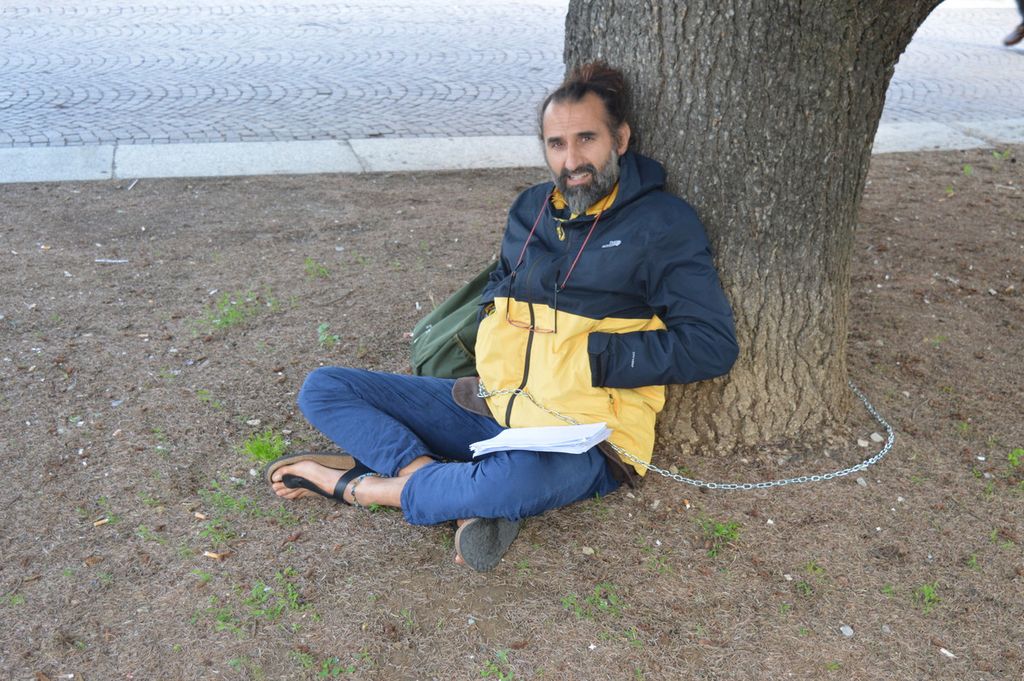 I consiglieri si sono incatenati a uno degli alberi centrali della piazza, intervenendo poi uno alla volta. Il professor Giovanni Arusa si è invece incatenato al primo degli alberi, all'angolo con corso Nizza.