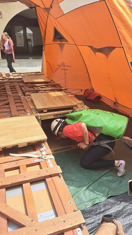 Non solo hanno dato informazioni sulle attività e su come ci si può avvicinare a questa affascinante disciplina sportiva ma anche fondamentale nel soccorso, ma soprattutto hanno messo a disposizione un "meandro", una forma stretta e sinuosa che non è raro dover affrontare in grotta.