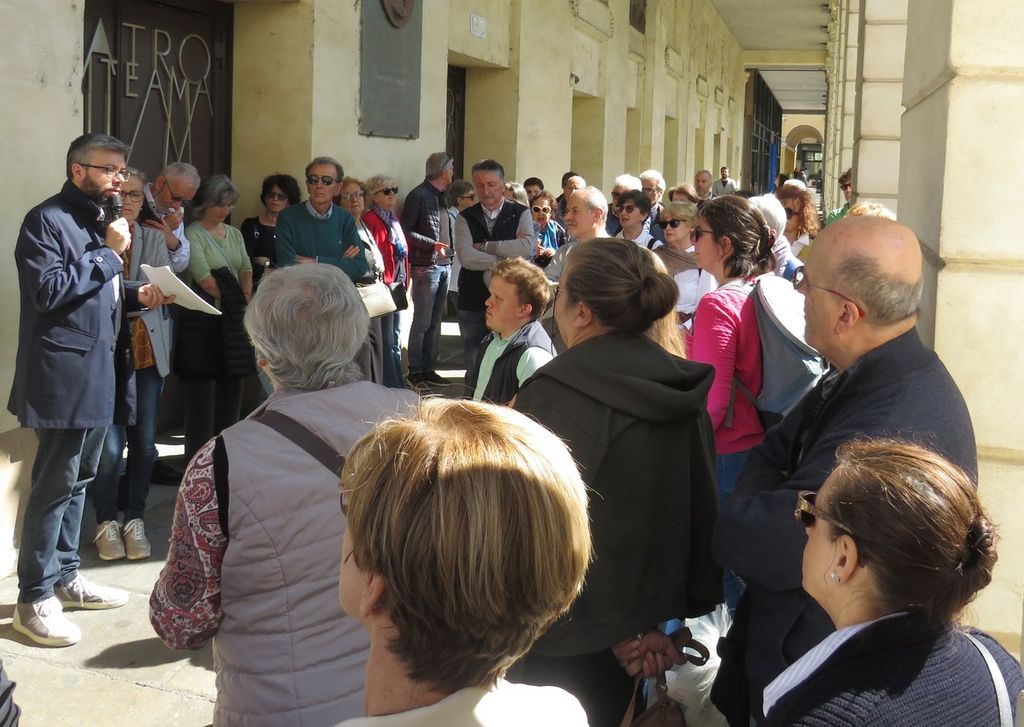 Ai numerosi partecipanti che si sono presentati al punto di partenza convenuto, il teatro Politeama, Flavia Barberis ha portato il saluto della associazione Albedo promotrice dell’iniziativa.