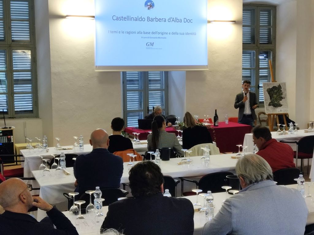 L’interessante excursus è proseguito con alcuni appunti storici sul vitigno Barbera, alcune riflessioni sulle sue denominazioni di origine (d’Alba, d’Asti e del Monferrato), sulle problematiche e le discrasie che negli anni Settanta esistevano tra la produzione e il mercato; sono stati analizzati anche gli interventi di sostegno delle istituzioni e le aspettative dei consumatori, fino ad arrivare a un focus sulla sottozona di Castellinaldo e sulle sue peculiarità produttive, economiche e sociali.