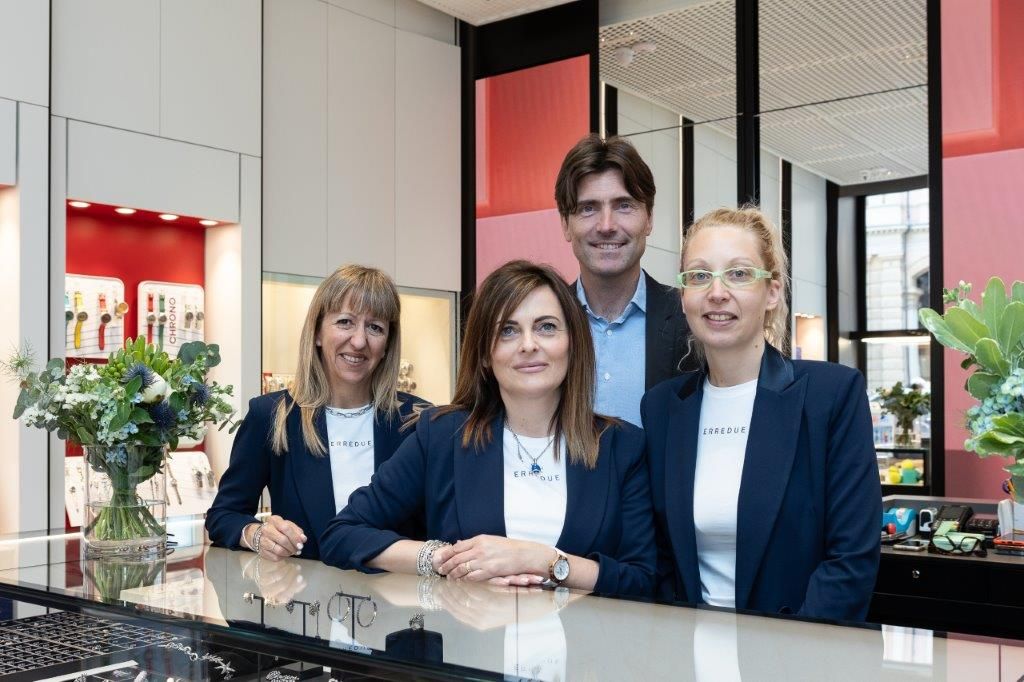 “Dopo quasi trent’anni abbiamo rinnovato completamente la nostra Gioielleria Erredue, nata inizialmente come Swatch Store ed evoluta in uno spazio moderno ed elegante, in cui l’anima più giovane dell’arte orafa si esprime con gioielli e orologi che guidano le tendenze di oggi per diventare i classici di domani” - afferma Aldo Rabino, titolare della Gioielleria Rabino e della Gioielleria Erredue.