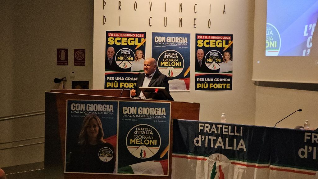 In vista delle prossime elezioni dell'8-9 giugno non è mancato, poi, il sostegno ai presenti in sala, candidati cuneesi con Fratelli d'Italia, chi per la corsa alle Regionali chi per quella alle Europee.