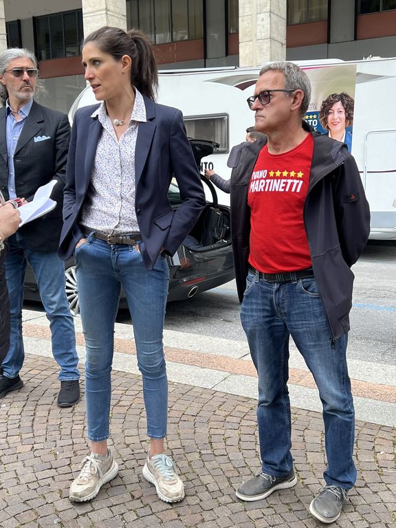 Martinetti ha scelto di essere in piazza Europa anche per chiedere chiarezza sul futuro dei cedri, che l'amministrazione vuole abbattere contro la volontà di tanti cittadini.