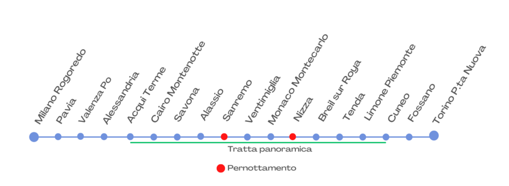 Il primo giorno, realizzare una Milano-Sanremo su rotaia passando da Pavia – Valenza Po – Alessandria – Acqui Terme – Savona, non molto difforme dal tracciato seguito dalla classica corsa ciclistica, per ricordare l’esistenza di un altro valico tra Piemonte e Liguria (quello, appunto, della Val Bormida, tra Alessandria e Savona) esistente fin dal 1874, ma poco utilizzato al di fuori degli spostamenti locali.