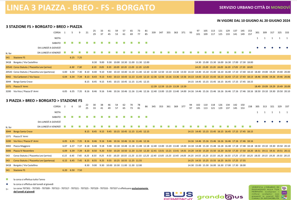 Di seguito alleghiamo orario della Linea 3 in vigore dal 10 al 20 giugno 2024.