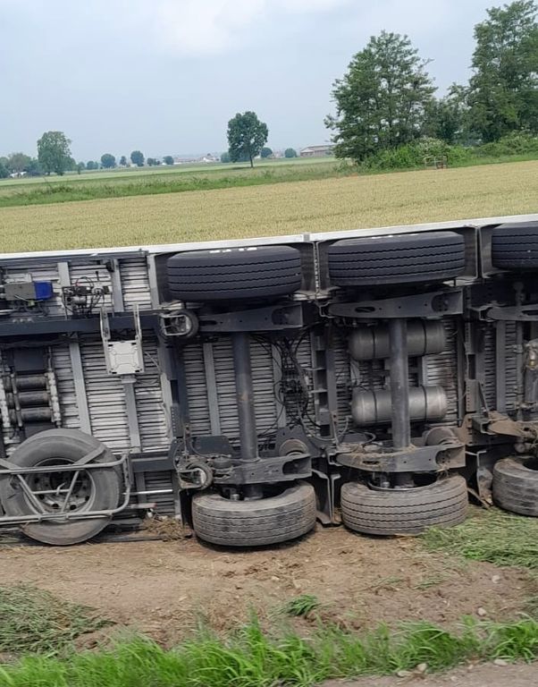 Incidente attorno alle ore 10.30 di oggi giovedì 30 maggio sulla strada tra Moretta e Saluzzo, dove un mezzo pesante si è ribaltato ed è uscito di strada, restando coricato su un fianco.