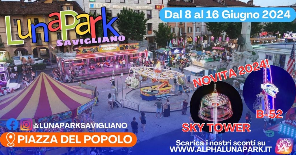 Dall'8 al 16 giugno, Piazza del Popolo di Savigliano ospiterà il tanto atteso Luna Park!