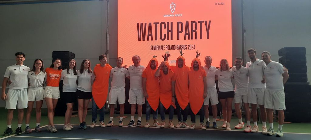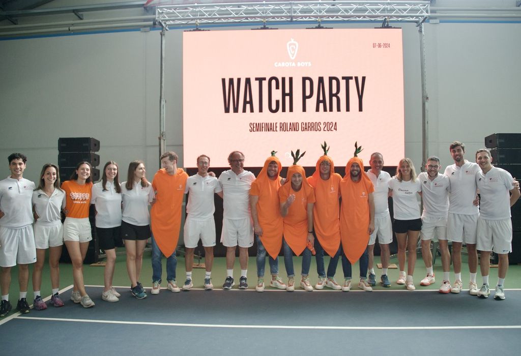 Il Tennis Stadium, la sede della VTT, di proprietà della famiglia Rosatello, si è colorato di arancione per accogliere circa 400 appassionati che si sono iscritti al Watch Party per la semifinale al Roland Garros fra Sinner e Alcaraz, attraverso i canali social dei “Carota Boys”, i sei ragazzi di Revello, che dista circa 15 minuti da Lagnasco, che nello stesso impianto curano il loro tennis: “Nulla a che vedere con quello di Jannik – dicono sorridendo – ma è sempre stata una passione comune”.