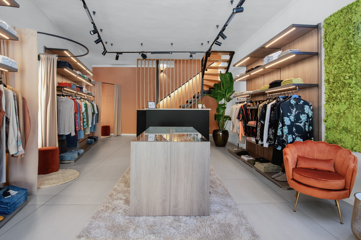 Il maggiore spazio, elegantemente arredato, regala quell’atmosfera raffinata ma accogliente e, fiore all’occhiello, la saletta al piano superiore, conferisce ulteriore fascino e si presta ad accogliere con riservatezza quanti gradiscono un momento più intimo nella scelta dei propri outfit.