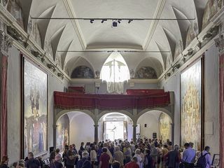 Tele che raffigurano momenti significativi della passione di Gesù Cristo e che, pur traendo ispirazione dall’iconografia classica e dai grandi maestri del passato, hanno la particolarità di “rappresentare una rappresentazione”: ogni cinque anni, infatti, gli abitanti di Garessio mettono in scena la Sacra Rappresentazione Medievale del Mortorio, e Giorgetto Giugiaro ha voluto rinnovare e valorizzare questa tradizione raccontandola, insieme ai suoi protagonisti, attraverso la pittura.
