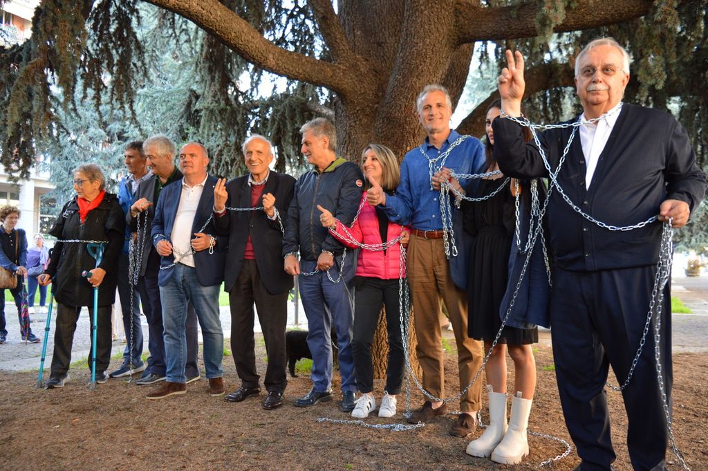 Per concludere la manifestazione i consiglieri sono tornati a incatenarsi a uno dei cedri.