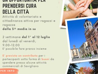 Un’opportunità per prendersi cura della Città, attraverso attività di volontariato e di cittadinanza attiva per ragazzi e ragazze dalla III media in sù.