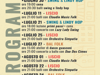 Il secondo evento, la Serata Swing e Lindy Hop, avrà luogo il 30 giugno 2024. La serata, dedicata agli anni '20 e '30, inizierà con una cena alle ore 19:00, seguita dai balli swing e Lindy Hop a partire dalle 20:30. Anche in questo caso, l'ingresso alla serata di ballo sarà gratuito. Per informazioni e prenotazioni sulla cena, si prega di contattare l'indirizzo email info.swingjuice@gmail.com.