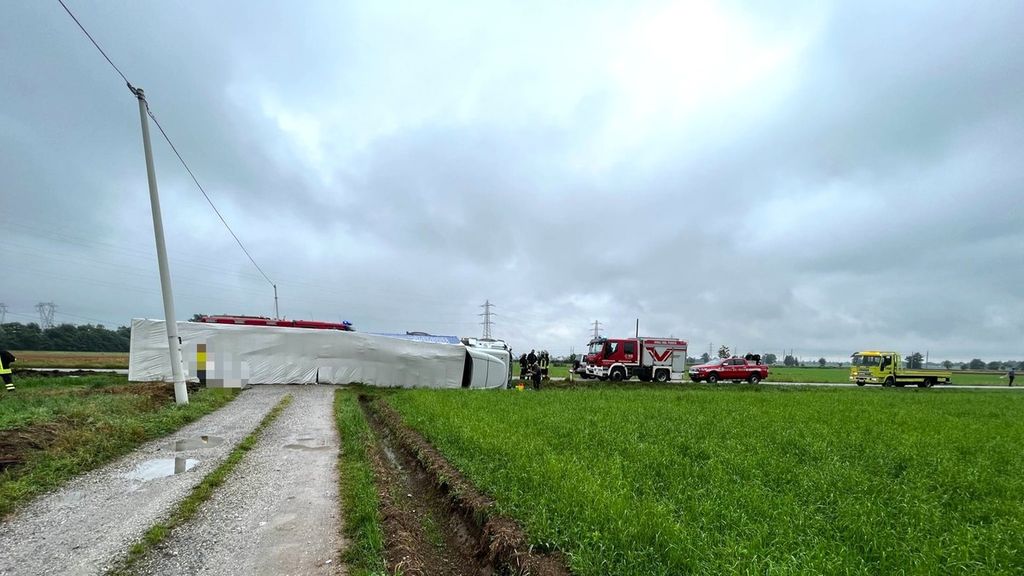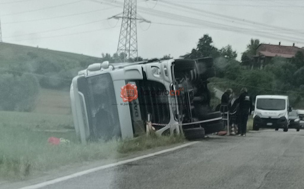 Mezzo pesante si ribalta sulla provinciale 43 a Sant'Albano Stura