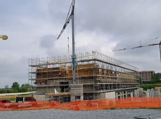 Il Guala di Bra, su progetto dello studio Kuadra di Cuneo, come il nuovo polo scolastico del capoluogo, avanza come da cronoprogramma: a livello strutturale è in fase di ultimazione l'ultimo piano dell'edificio. Subito dopo si inizierà con la parte impiantistica.