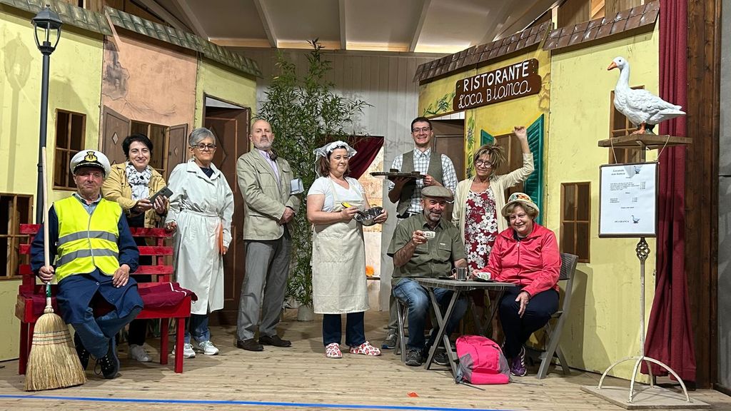 I testi della commedia che si intitola “Ën piása: 2 sgiaflun e n’oca” sono di Walter Gabutti con la regia di Rita Meschiati. Luogo dell’appuntamento per questo evento è il cortile di Pietŕáss. Nel dopo teatro, come consuetudine, pubblico ed attori si incontreranno per ricordare e narrare altre storie. Nei giorni successivi e fino a ferragosto lo spettacolo si metterà in cammino per intrattenere le genti di numerosi paesi della Langa.