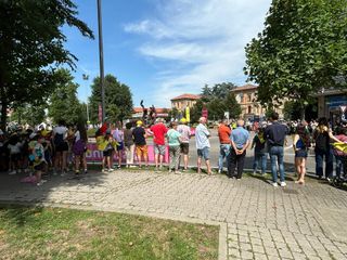 Tra i tanti spettatori che hanno seguito il tour lungo il percorso albese, anche il sindaco Alberto Gatto e il vice sindaco Caterina Pasini che hanno aspettato il passaggio in piazza Garibaldi.