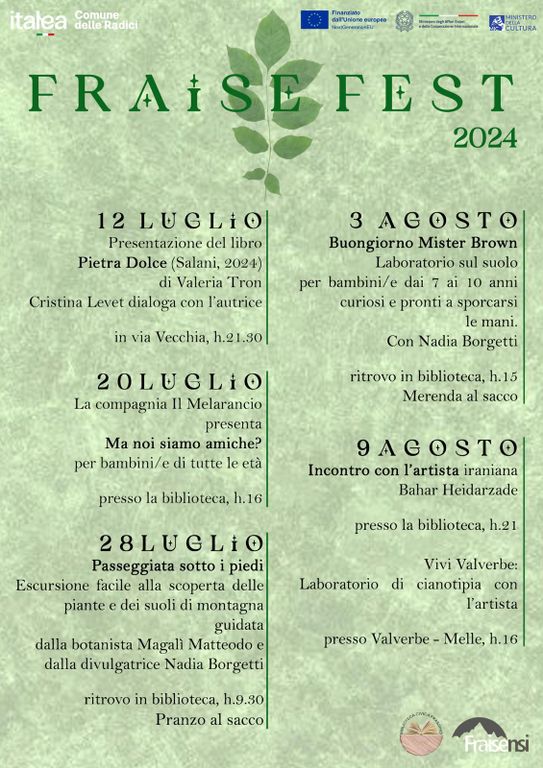 Venerdi 12 luglio alle ore 21 prenderà avvio la terza edizione della rassegna estiva “FRAISE FEST”, organizzata dalla Biblioteca Civica di Frassino in collaborazione con l’Associazione culturale Fraisensi.