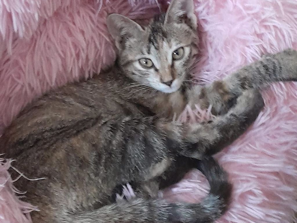 Ha un anno la tenera Princi, micia dal pelo corto e tigrato.